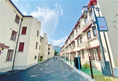 历经70年,上海第一个工人新村曹杨新村经过改造,焕然一新。图为曹杨新村内道路建筑。