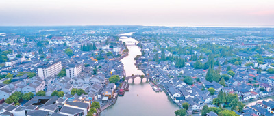 上海市青浦区朱家角镇俯瞰。