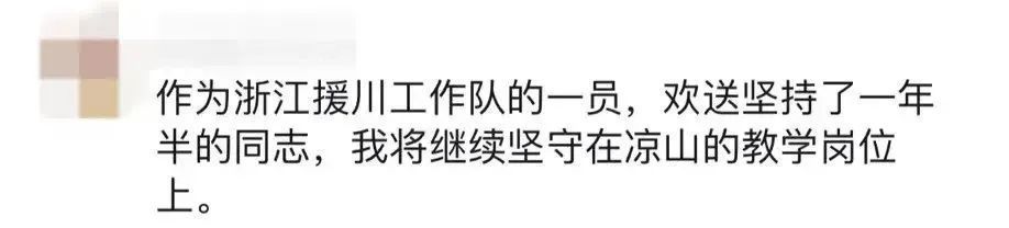 她对同学们说:“有一些告别,不是再见,而是一个全新的开始。甚至有同学可能会为了再见我一面,就走出这座大山,来到宁波,来到浙江。我会在宁波静静地等待你们。你们只要跟我说一声‘老师我来了’,就可以了。”