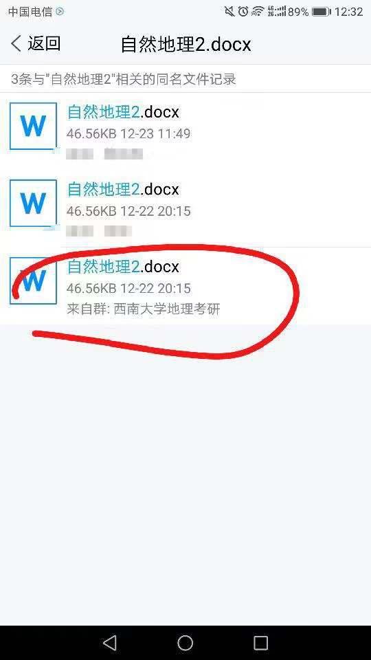 记者随即对此进行调查。据一考生介绍,22日晚,QQ名为“15地信ato”的网友在一个名为“西南大学地理考研”的QQ群里,上传了一份名为“自然地理2”的word文档,文档中罗列了一些考研知识点。虽然上传者很快就将文档删除,但还是有人成功将文档下载。