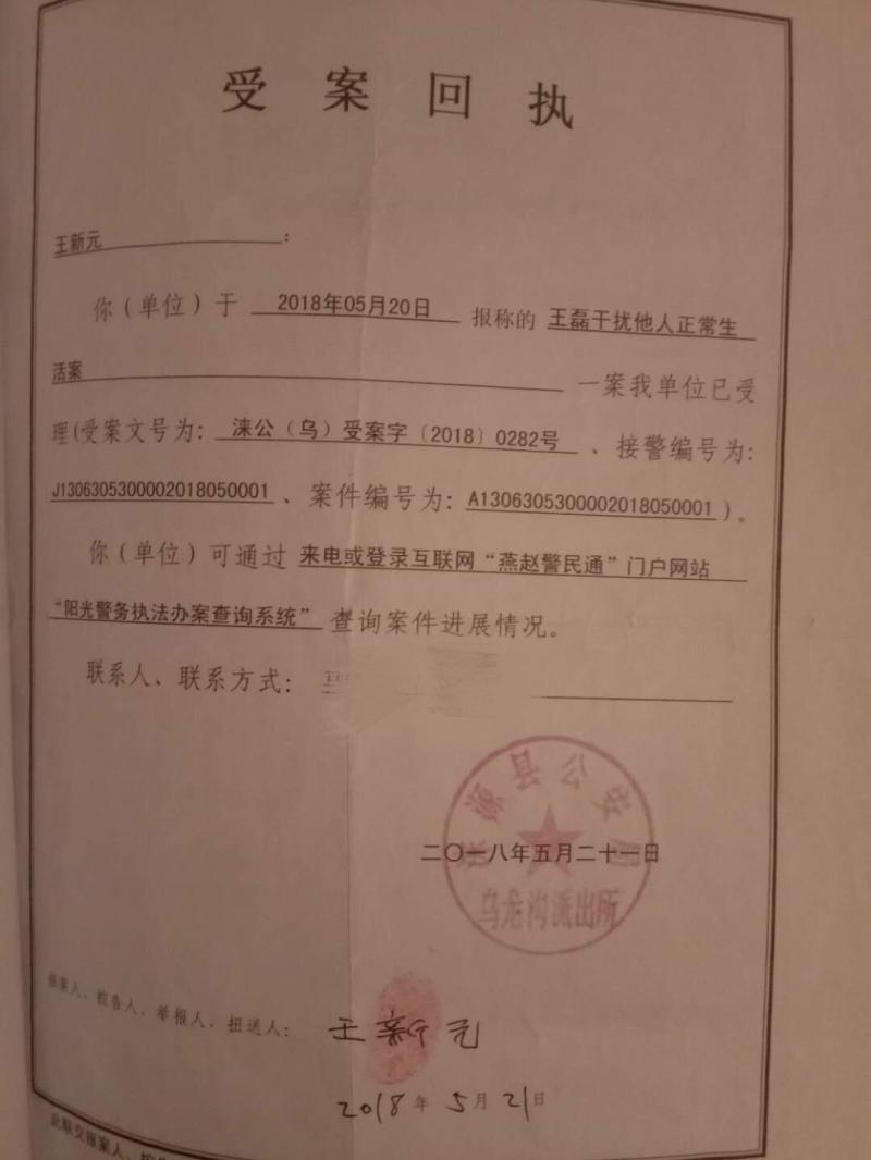 小菲家人曾因王磊上门骚扰报案