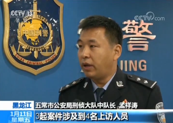 五常市公安局刑侦大队中队长 孟祥涛:3起案件涉及到4名上访人员,在各自不同的地点,被人用棍棒、镐把等凶器将腿打折。