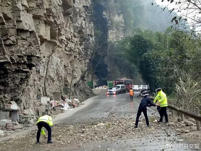 地震发生后,珙县交警大队立即启动地震应急预案,指派各中队对辖区道路进行排查。目前,宜威路上罗路段(干岩子处)有落石,上罗中队全体人员正在对该路段的落石进行处理,过往车辆请缓慢观察通行。