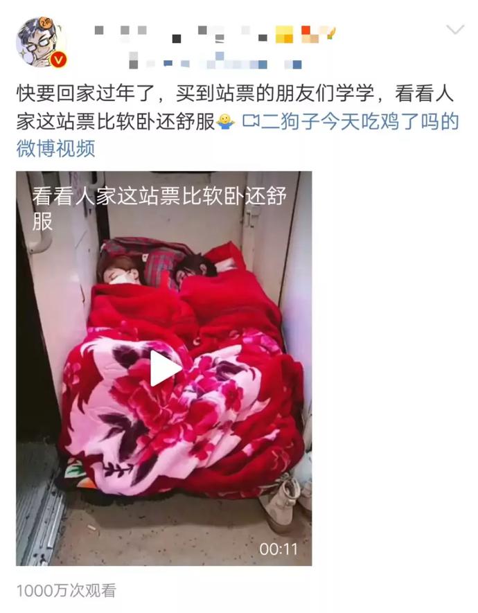 视频录制于火车的上下客过道处,有人用棉被、毛毯等物搭起临时“床铺”,两名女性躺在“床铺”里休息,有转发者建议“买到站票的朋友们学学,这站票比卧铺都舒服”。