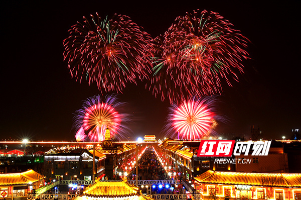 除夕夜,浏阳烟花在河北正定古城上演新春焰火秀。
