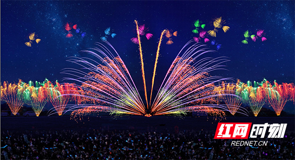 “融合文化艺术、科技创新、安全环保的理念,这场烟花表演中我们采用了网幕变色架子烟花、高空文字特效烟花、50米特效3D立体塔焰火、高空特效礼花弹、建筑冷光艺术焰火编排等众多创新形式,突破了传统的平面式的焰火画面,利用地面、建筑、立体塔装置等形成一个立体的焰火秀场,为观众呈现了一场3D视觉盛宴。”浏阳世纪红烟花焰火燃放团队相关人员说。