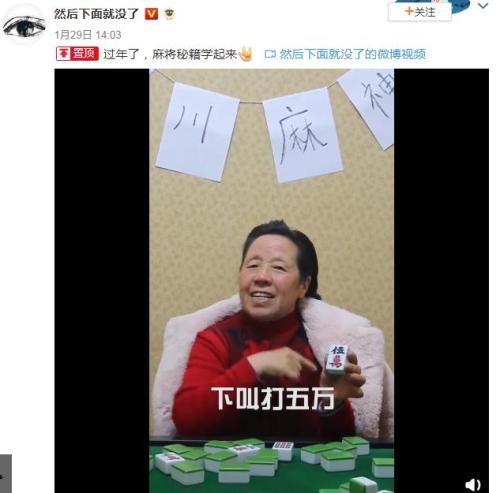 来四川成都走一走,除了闻到腊味儿香,应该还能看到很多人家的麻将桌。作为春节的必备娱乐项目,亲朋好友一相聚,不打个通宵怎么行?“宁挨千刀剐,不胡第一把,幺鸡二条,不打要遭,八万九万,不打输完,有四不打一,二五先打八……”最近,一位四川奶奶就用Rap向全国网友传授了一段打麻将秘诀。