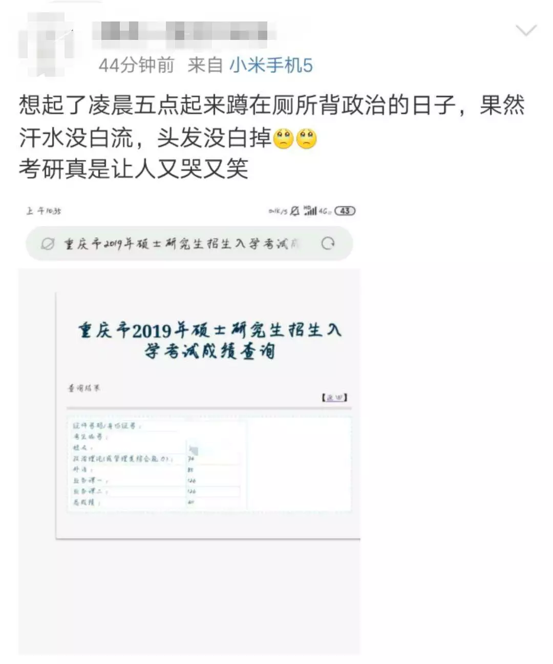 与此同时,不少考生看到成绩后都想起那段备考奋战的日子,“考研真让人又哭又笑”↓↓↓