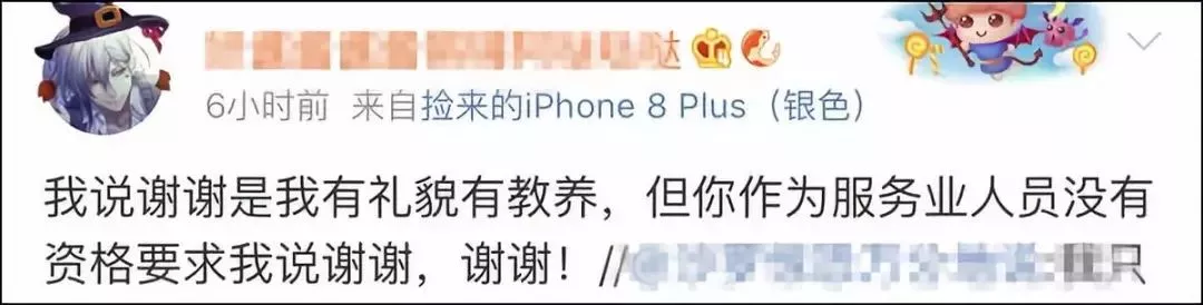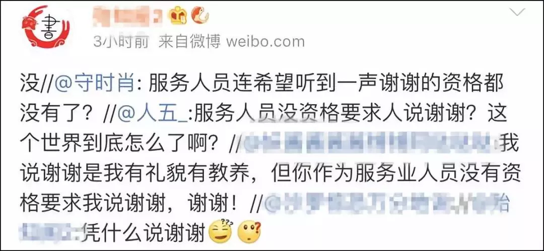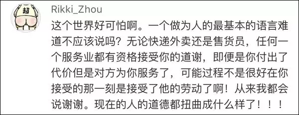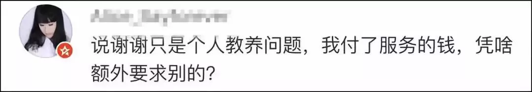 在被其他网友指责时,有人更是斩钉截铁回答:没有,服务人员没有资格被感谢。