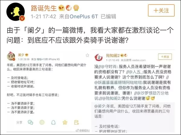 “到底该不该跟外卖员说谢谢?”为此,网友们又吵起来了……