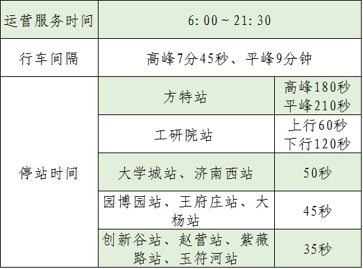 据济南轨道交通集团有限公司发布的消息,济南地铁1号线于2019年4月1日商业运营,首班车于早6:00在工研院站和方特站同步对向始发。