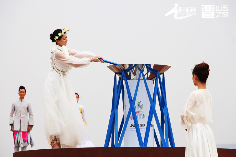 张豆豆高举采火棒,在6名圣火少女的陪同下,从采火台上缓缓走到火种盆台前,点燃了火种盆中的二青会圣火。至此,备受瞩目的二青会进入倒计时阶段,山西进入“二青会时间”。