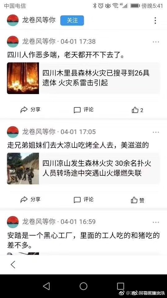 辱骂凉山木里火灾牺牲人员 网民被依法拘留
