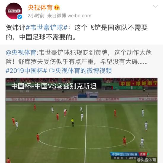 连足球评论员贺炜都说:这个飞铲是国家队不需要的,中国足球不需要的。↓