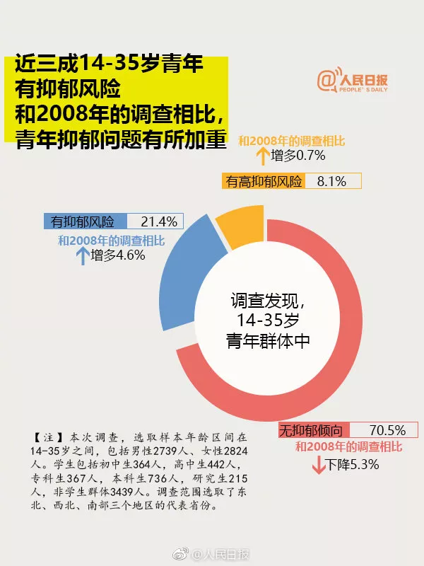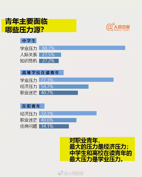 近日,中国青少年研究中心对青年进行了心理健康专题调查。调研发现,近三成青年有抑郁风险,过半有不同程度焦虑问题,经济、职业、学业是青年的三大压力源……