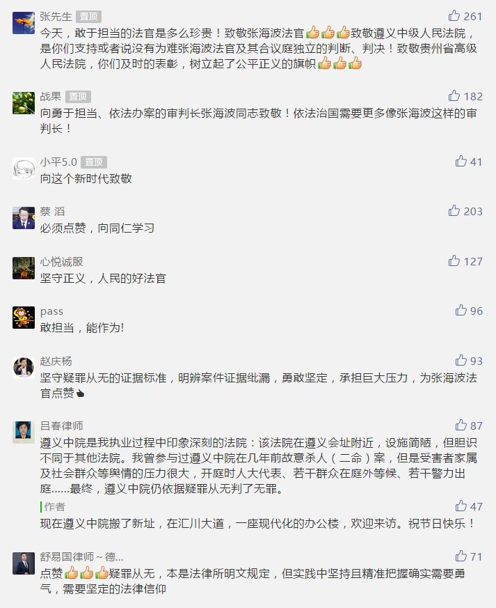 贵州高院党组书记、院长韩德洋表示,遵义中院在审理该案时,强化人权保障理念、程序公正理念,证据裁判理念,不放过任何一个疑点,在严密的证据体系基础之上,作出公正裁决,最终使无辜者免于刑事追究,让正义得以彰显,值得全省法院学习借鉴。