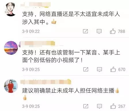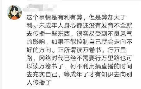 禁止未成年人担任网络主播,这条建议你同意吗?网友评论出奇一致!