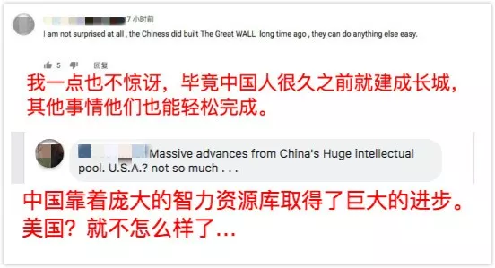 “我一点也不惊讶,毕竟中国人很久之前就建成长城,其他事情他们也能轻松完成。”