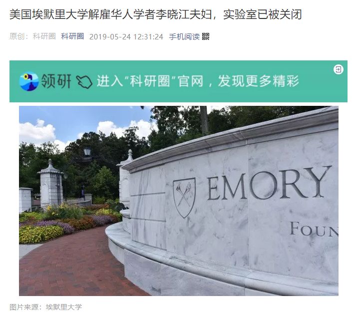 据《环球科学》杂志旗下公号“科研圈”此前披露,5月23日,美国埃默里大学突然把自己的华裔终身教授李晓江,以官方邮件通知的形式正式开除,这也是对5月17日为何突然关停李晓江在美国实验室的进一步解释。