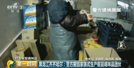 黑龙江齐齐哈尔市公安局建华分局民警 邵开明:因为他自己的产品从味道上和色泽上,以及其他的市场产品有区别,于是他就想了一个方法,到市场上低价购买过期产品,用过期产品与自己生产的产品进行勾兑调味。