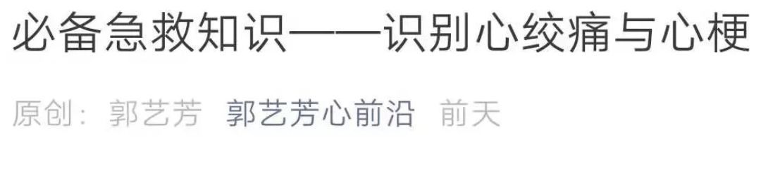 关于心肌梗死,河北省人民医院副院长、著名心血管病专家郭艺芳教授,近日在他的个人微信公众号发布了相关科普文章《必备急救知识——识别心绞痛与心梗》。