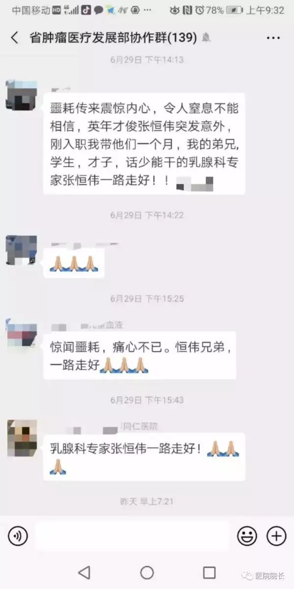 6月28日,河南省肿瘤医院乳腺科医生张恒伟去世