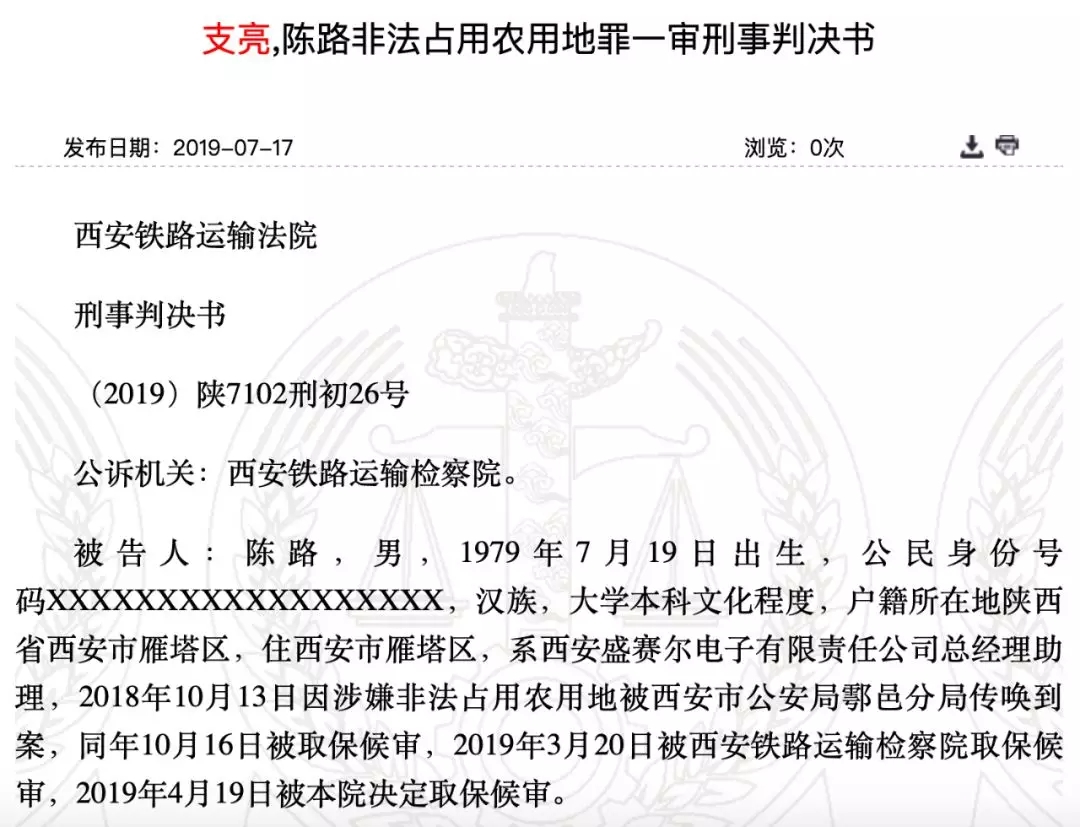 判决书披露,陈路出生于1979年7月19日,大学本科学历,为西安盛赛尔电子有限责任公司总经理助理,户籍所在地与居住地均是西安市雁塔区。