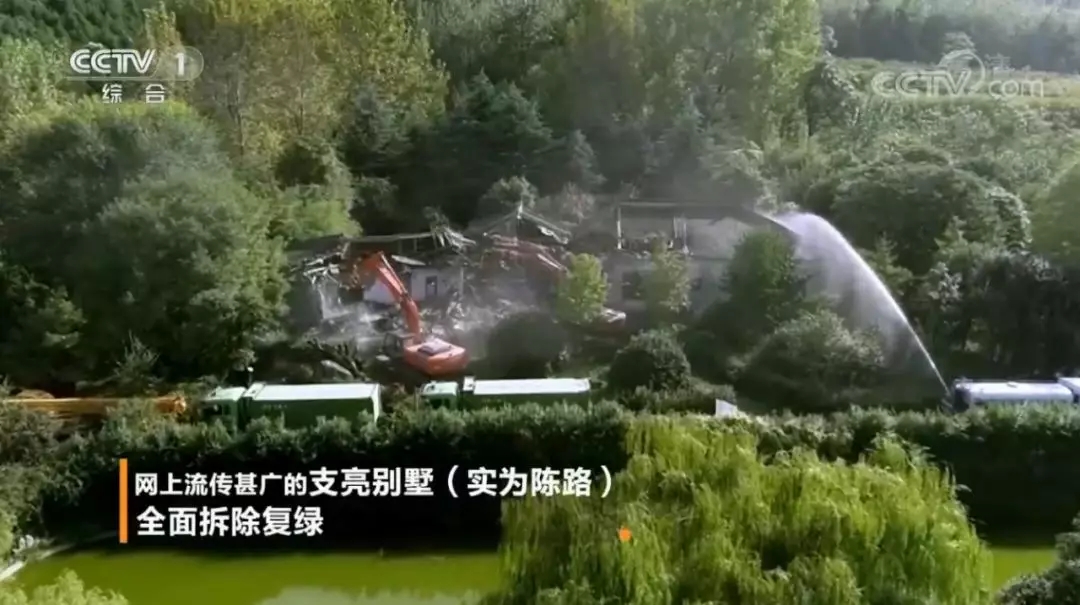 央视专题片《一抓到底正风纪》披露也提到了该别墅:网上流传甚广的支亮别墅(实为陈路)全面拆除复绿。