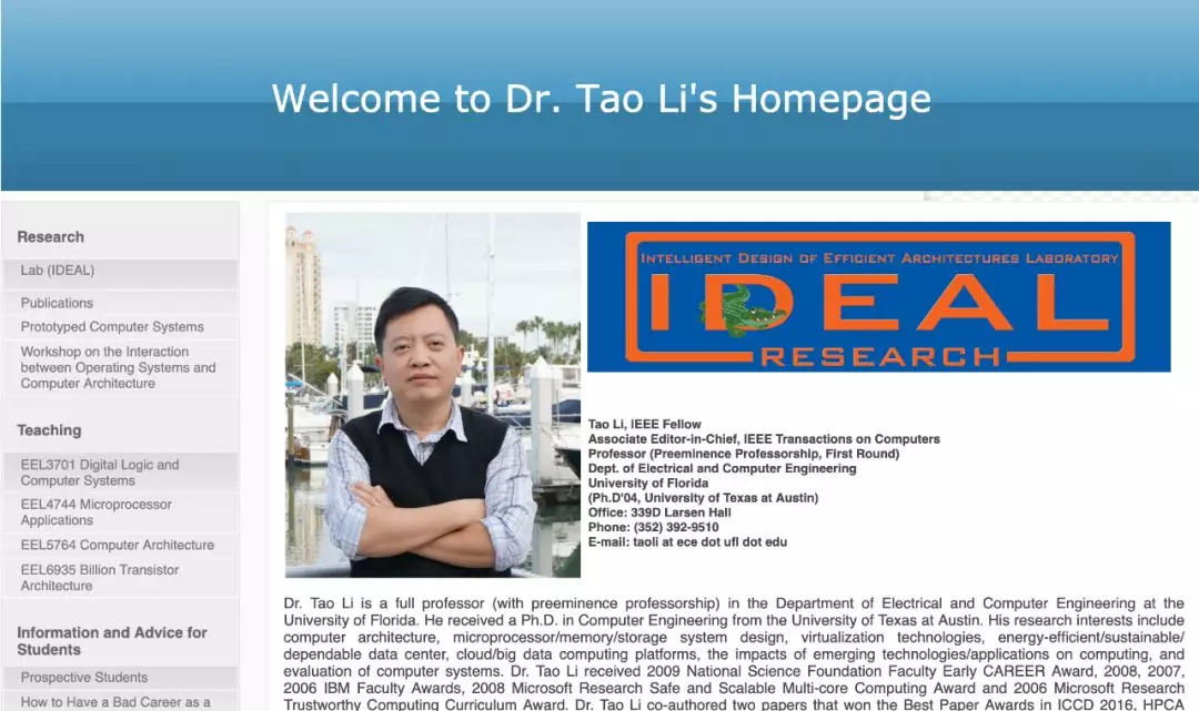 李涛在佛罗里达大学实验室的官网