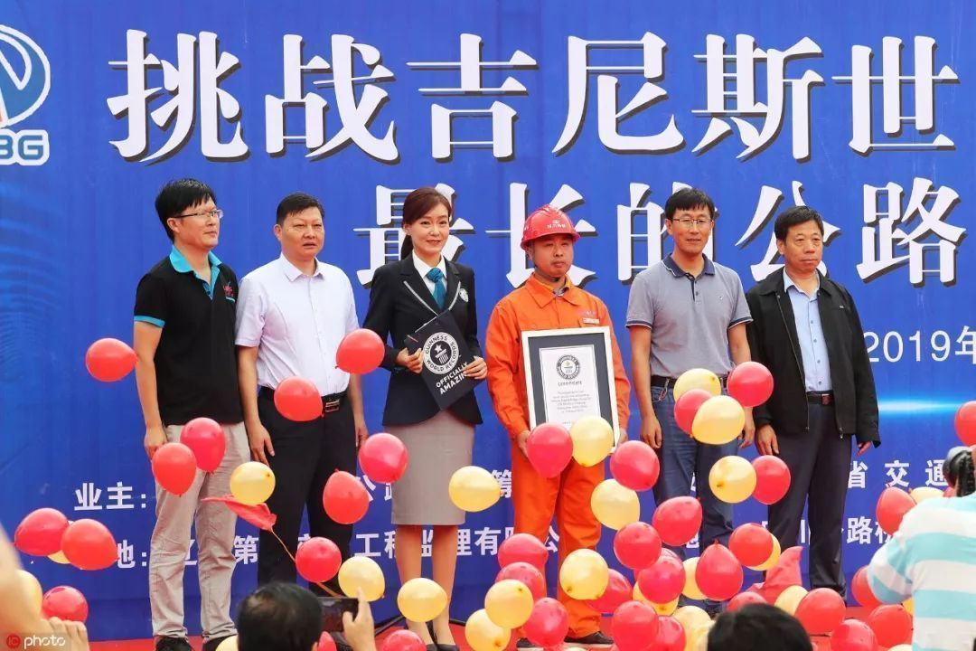 这是在中国一条新贯通公路隧道的建设现场,来自吉尼斯世界纪录认证官的祝贺。