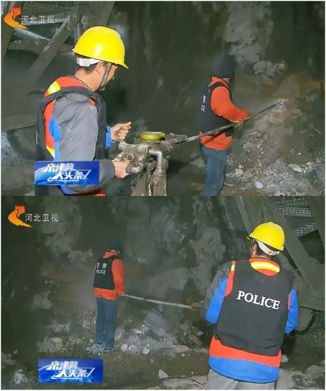 施工人员正在进行钻爆(河北卫视报道截图)