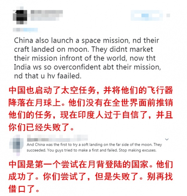 登月失败,印网友:“我们的火星探测领先中国”