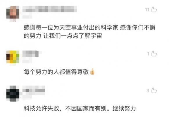 还有很多中国网友想起中国航天事业发展的不易,为中国科学家鼓劲: