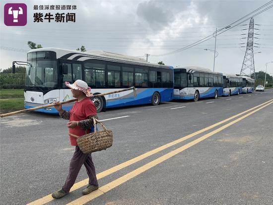 在现场,紫牛新闻记者巧遇到扛着锄头下田的蒋大妈。蒋大妈告诉记者,她是路东侧镇南村社区的居民,至少在半年前,这20辆车子就悄无声息地停了过来,具体时间记不清楚了。这么长时间、这么多、这么好的大客车没人来问,社区居民们都觉得很奇怪,但慢慢也就习以为常了。