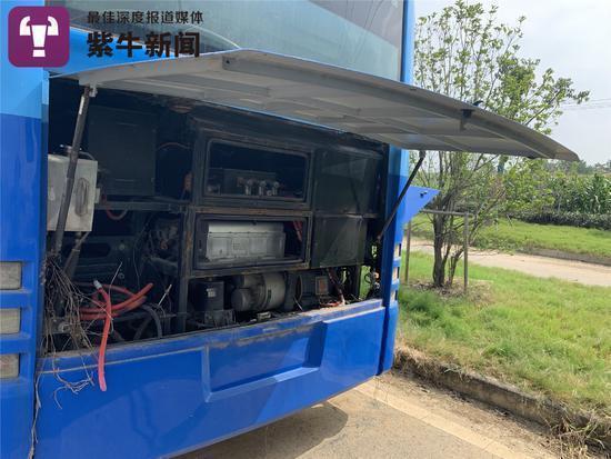 扬子晚报紫牛新闻记者注意到,这些车辆的整体车况,看上去都还是很新的,并且与路面上奔跑的普通公交车大同小异。但是,由于日晒雨淋的时间太长,加上一些外力原因,不少车辆的损坏状况严重。