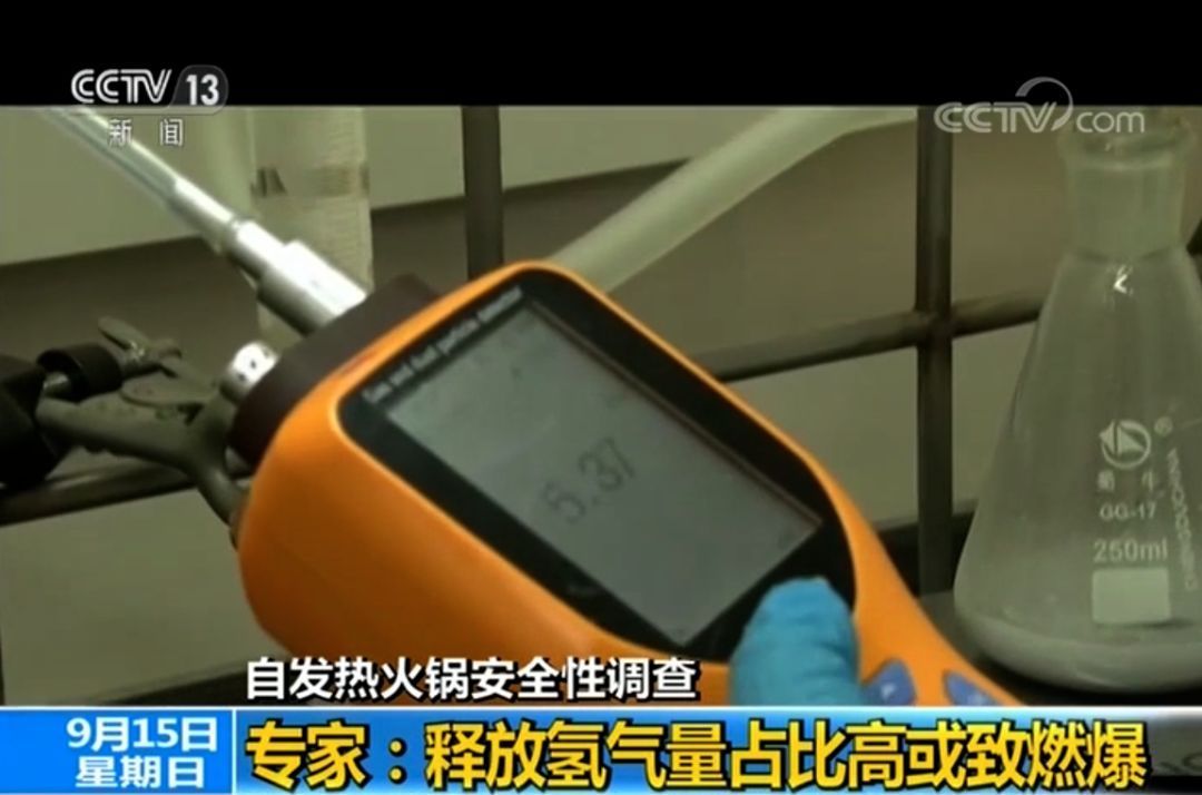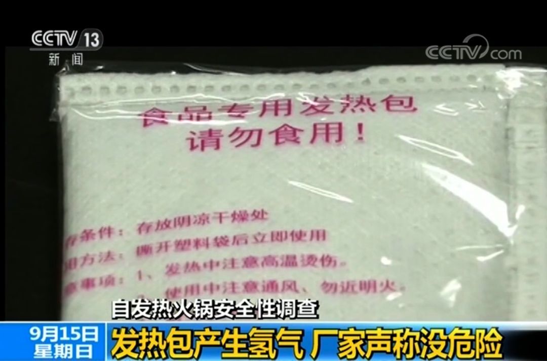 释放氢气可致燃爆 密闭空间、公共场合均存隐患那么,发热包遇水反应后是否存在安全隐患呢?不久前,上海市消费者权益保护委员会通报了对20件自热方便火锅类产品的测试情况。测试结果显示,测试的发热包均属于“遇水放出易燃气体的物质或混合物”。