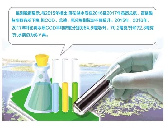 呼伦湖地处呼伦贝尔大草原腹地,素有“草原明珠”之称。为了治理呼伦湖日益严重的污染问题,当地投资13.15亿元上马了呼伦湖生态环境治理一期工程,然而效果却让人大跌眼镜。近日,据《法制日报》报道,呼伦湖治理后总氮、高锰酸盐指数有所下降,但化学需氧量(COD)、总磷、氟化物指标却不降反升,水质仍为最差的劣五类,不适宜饮用。