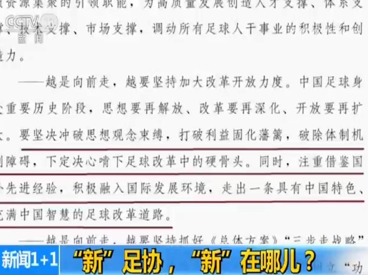 中国足协主席 陈戌源:要坚决冲破思想观念束缚,打破利益固化藩篱,破除体制机制障碍,下定决心啃下足球改革中的硬骨头。同时,注重借鉴国外先进经验,积极融入国际发展环境,走出一条具有中国特色、充满中国智慧的足球改革道路。