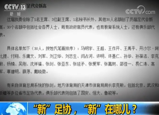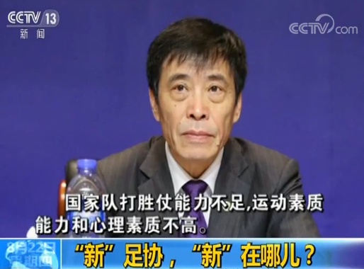 白岩松:首先这个我相信您在参加这会的时候,虽然您既是身中人但是又是一定有我们媒体人特有的要从局外去进行观察,首先您觉得这次新的足协从主席到它的换届,最跟以往不同的您个人的感觉是什么?不同在哪儿?