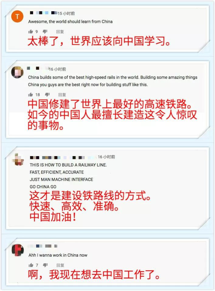 “这才是建设铁路线的方式。快速、高效、准确。中国加油!”