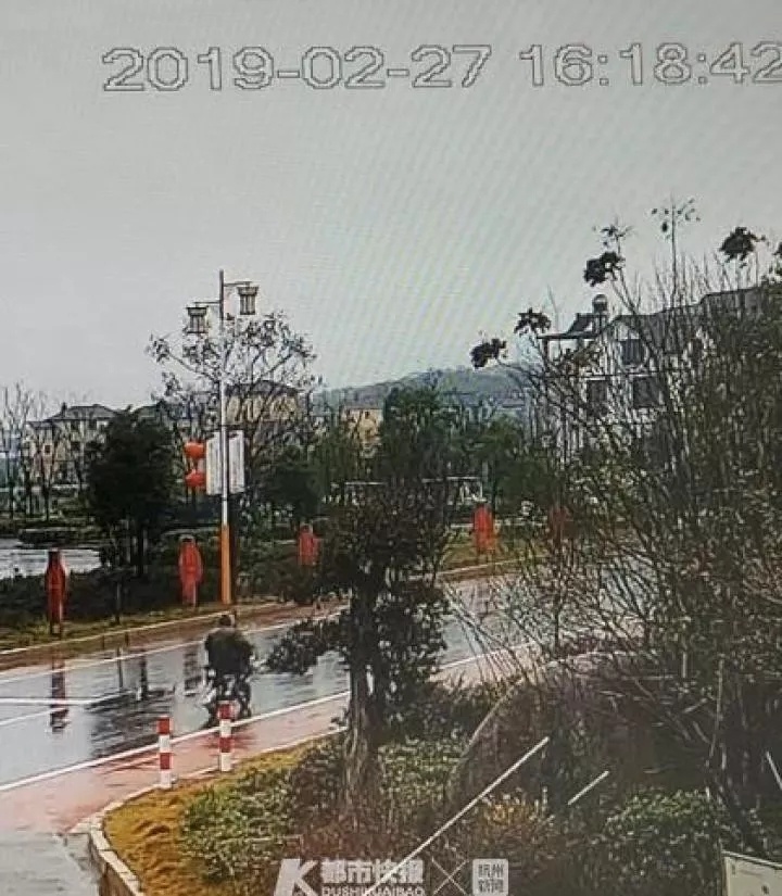 2月27日下午,天下小雨,在设在衢江莲花镇西山下村一路口的监控画面里,一辆二轮电动自行车由左向右横驶过路口,张女士未戴头盔,穿有帽子的雨衣,在路肩与机动车分界线靠机动车道内侧约二三十厘米的地方骑行。电动自行车驶出监控画面约4秒,一辆银灰色小轿车进入、驶出监控画面。随后,轿车超越电动自行车,电瓶车侧翻滑出,张女士头部着地受伤,经抢救无效死亡。