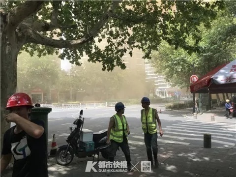 事情发生在中午11:30左右,网友视频显示,建国北路塌陷处升起大量黄色烟尘。