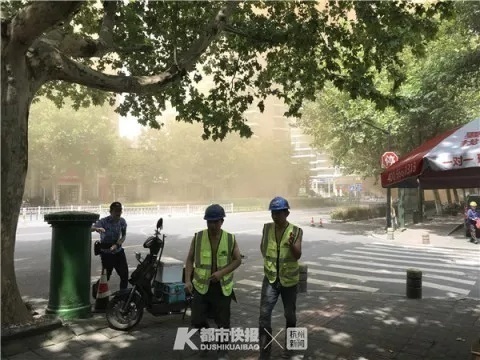 据都市快报微信公号此前报道:今天中午,有多位读者报料,建国北路出现塌陷,现在已经封道了。