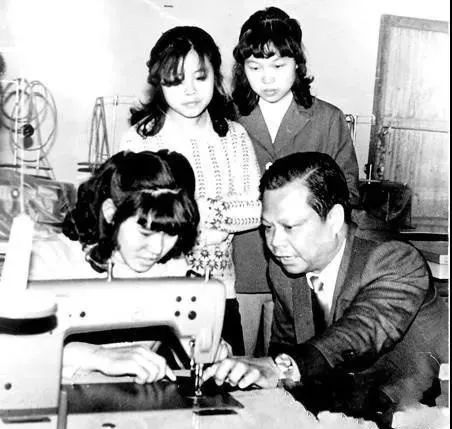 创业时期的曾宪梓细心教员工制作领带。图/大公报