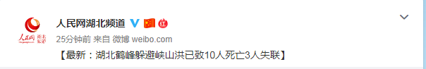 8月5日,@人民网湖北频道 发布消息称,湖北鹤峰躲避峡山洪已致10人死亡3人失联。