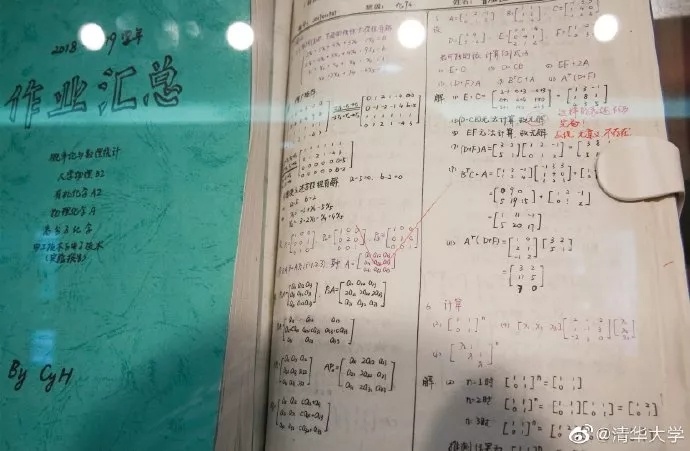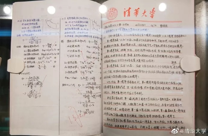 展览展出了很多清华毕业生和在校生的笔记、作业、计划等,字迹工整、思路清晰,这样学习怎能不优秀!