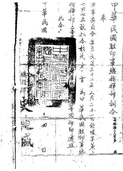 方寿纯一直保存着这张被授军衔的《驻印总指挥训令》。通过照片可以看到,授衔时间为1943年8月21日,内容为:授予方言(方寿纯)为二等军佐军医(注:相当于中尉),落款为“总指挥史迪威”。