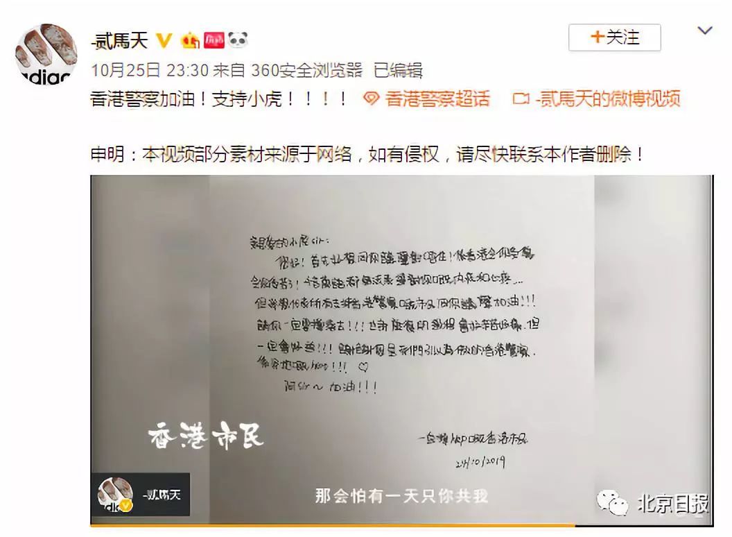 还有网友剪辑制作了撑警视频,为小虎Sir等香港警察加油。