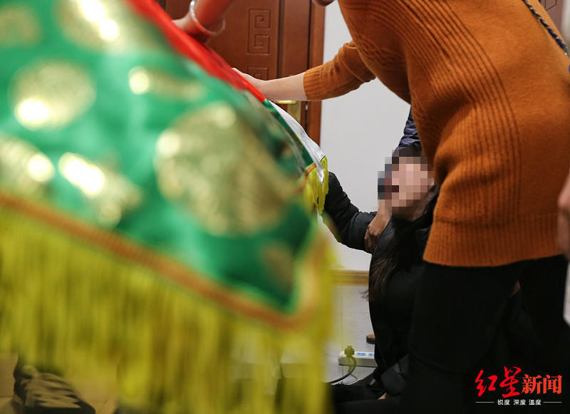 庄女士在女儿韩某的遗体前痛哭