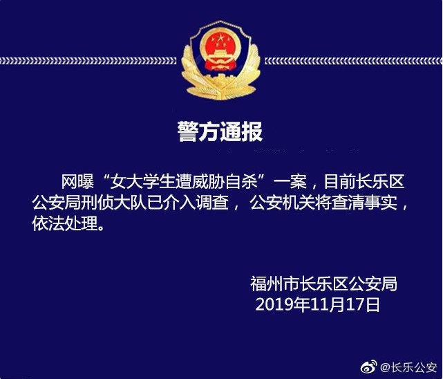 11月19日下午,记者再次尝试拨通郑某某父亲的电话,但截至记者发稿,电话都没有接通。记者此前曾与郑某某父亲通话,郑某某父亲表示,绝不逃避该承担的责任,但他也表示,儿子在备忘录中说明图片并非裸照,还曾下跪道歉。儿子已被警方拘留,福州长乐区公安局已介入调查。11月17日,长乐公安发布警情通报:网曝“女大学生遭威胁自杀”一案,目前长乐区公安局刑侦大队已介入调查,公安机关将查清事实,依法处理。